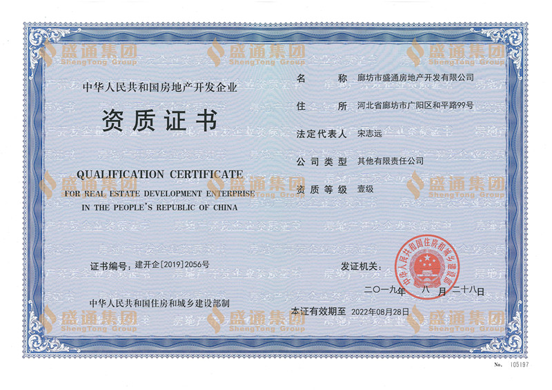 2019年8月28日,廊坊市盛通房地產(chǎn)開發(fā)有限公司(簡稱盛通地產(chǎn))順利通過國家住房和城鄉(xiāng)建設(shè)部嚴(yán)格的資質(zhì)審查,成功晉升國家一級資質(zhì)房地產(chǎn)開發(fā)企業(yè)。這是廊坊全市范圍內(nèi),繼新奧、華夏、榮盛等企業(yè)后取得一級資質(zhì)的第九家地產(chǎn)企業(yè)。