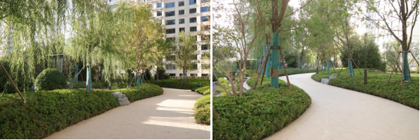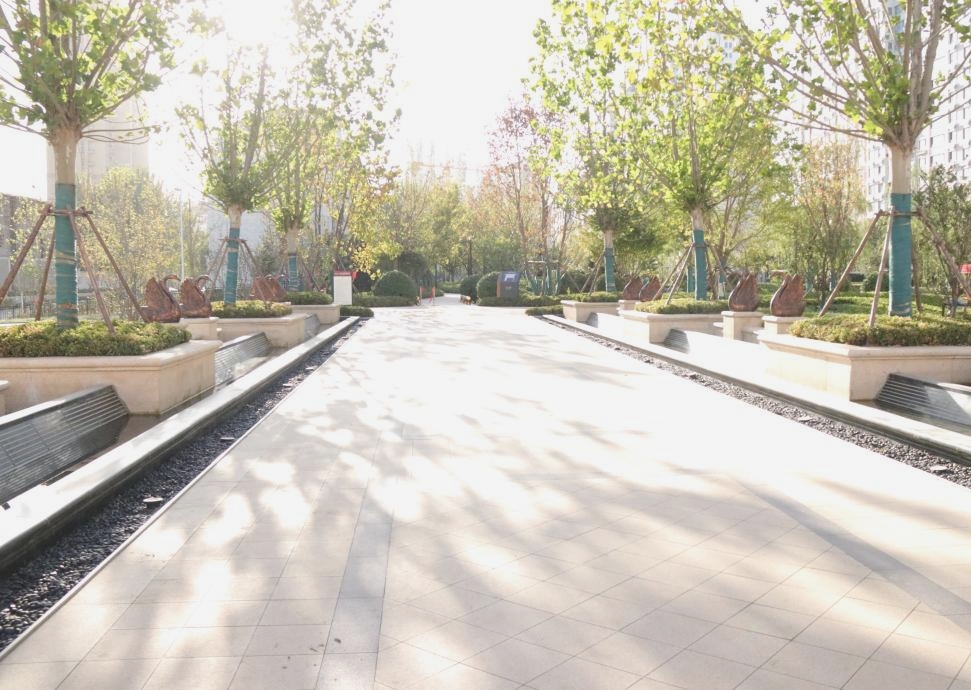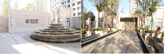 美好的人居體驗(yàn),從步入廊坊陽(yáng)光郡社區(qū)園林的那一刻開(kāi)始。沿著水景交融的迎賓景觀軸走到盡頭,原本規(guī)劃的陶瓷PC磚,為了提升業(yè)主的歸家體驗(yàn),升級(jí)成了石材鋪裝,原始石材的質(zhì)感和肌理勾勒出返璞歸真的園林意境。