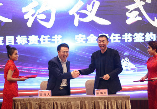 本次新春年會由兩大部分組成,第一部分為總結(jié)表彰,第二部分為晚宴。下午15:00會議正式開始,伴隨著開場視頻的播放拉開了本次會議的序幕。會議首先由常務(wù)副總裁王文濤進行動員講話,王總對京津冀市場情況及廊坊市發(fā)展趨勢進行了介紹,同時提出2018年要嚴抓內(nèi)控管理,業(yè)績再創(chuàng)新高。隨后,各子公司分別進行總結(jié)匯報,并對2018年作出工作部署。在簽訂責(zé)任書環(huán)節(jié),董事長與各子公司負責(zé)人一起簽訂目標責(zé)任書,同時各子公司負責(zé)人簽訂安全責(zé)任書,對集團作出安全承諾。